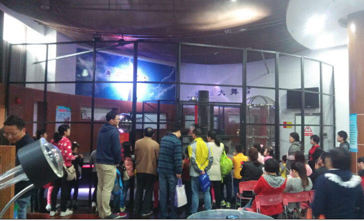 电磁大舞台主要包括四件展品,分别是怒发冲冠、沿面放电、特斯拉线圈和法拉第笼实验表演。它结合了声光电的立体空间感、和舞台剧的炫丽感,营造出一个神奇的科学氛围。这一系列有惊无险的电磁现象将著名科学家富兰克林、法拉第、特斯拉等人的历史性经典实验加以生动再现。