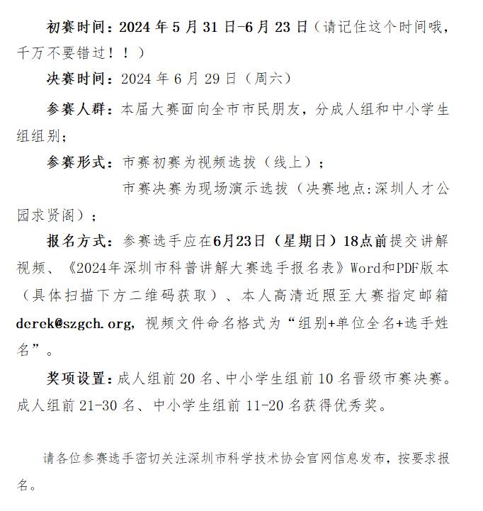 2024年深圳市科普讲解大赛开始啦!速来报名