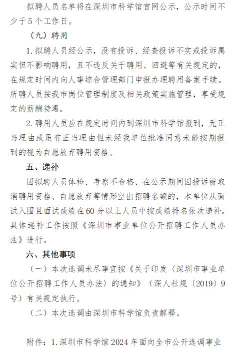 深圳市科学馆2024年面向全市公开选调事业单位工作人员拟聘人员公示